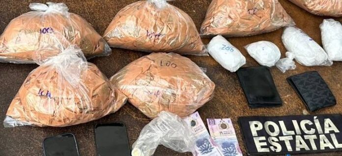Ante la intervención de la Policía Estatal, se les incautaron dos pistolas con cargadores, cartuchos y aproximadamente mil 400 envoltorios con narcótico, de los cuales 700 contenían hierba verde.