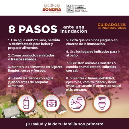 Hermosillo, Sonora; 4 de septiembre de 2025.- Ante la llegada de la tormenta tropical Lorena y las lluvias que se prevé afecten diversas regiones del estado, el Gobierno de Sonora, a través de la Secretaría de Salud Pública, hace un llamado a la población para que siga las siguientes recomendaciones preventivas, con el fin de proteger su salud y seguridad.