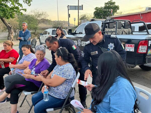 Rita Olivia Burgos Villaescusa, coordinadora estatal del Centro de Prevención del Delito y Participación Ciudadana de la SSP Sonora, junto a elementos de Policía Estatal escucharon las peticiones de los habitantes de la colonia, mismas que se comprometieron a gestionar ante las autoridades competentes.